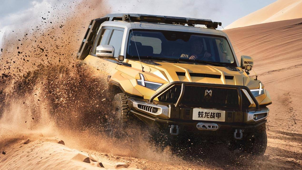 作為面向深度越野用戶和專業玩家打造的一款全域機動的豪華電動越野座駕,猛士917蛟龍戰甲沿襲了猛士家族“雄魂”設計,將軍武風格與中國龍元素相結合,形成“蛟龍戰甲”獨有的設計創意。沙漠風暴黃軍事涂裝,搭配銀頂撞色,高級感拉滿;威嚴的直瀑式中網布局、威猛的龍牙仿生造型、威風的龍鱗式機蓋通風罩,將前臉戰斗值拉滿,破風而行,一往無前;全封閉式旋翼鍛造輪轂,借鑒軍車設計,搭配前后寬體輪眉,宛如蛟龍出海,破浪逐波。