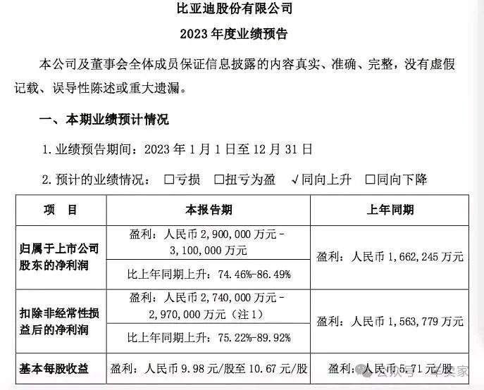 除了在銷量上一騎絕塵之外,比亞迪2023年也是賺的盆滿缽滿,近日比亞迪發(fā)布公告顯示2023年比亞迪預(yù)計盈利290億到310億,意味著比亞迪日賺將近8000萬,就問各位服不服!當(dāng)一些車企還在為活著而掙扎的時候,比亞迪已經(jīng)過上了小康的生活!