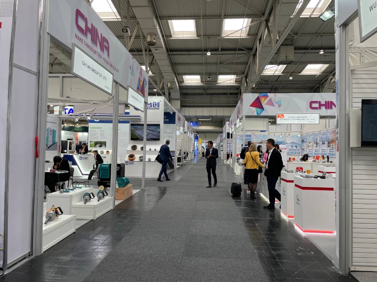 在本次的參展企業中,雖然中國企業僅次于德國本土企業數量,達到1220家,但真正在主場館和主位置的寥寥無幾,大多數中國企業依然在各個展館的四周,以標準展位形式為主,展區內擺放著各類工業設備及海報,他們大多數是通過展覽公司、政府園區組團等形式參展,主要企業類型以軸承、傳動軸以及精密刀具等為主。