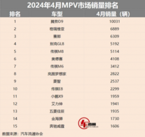 4月MPV銷量丨格瑞維亞進前二,GL8持續下滑,理想MEGA跌出榜單