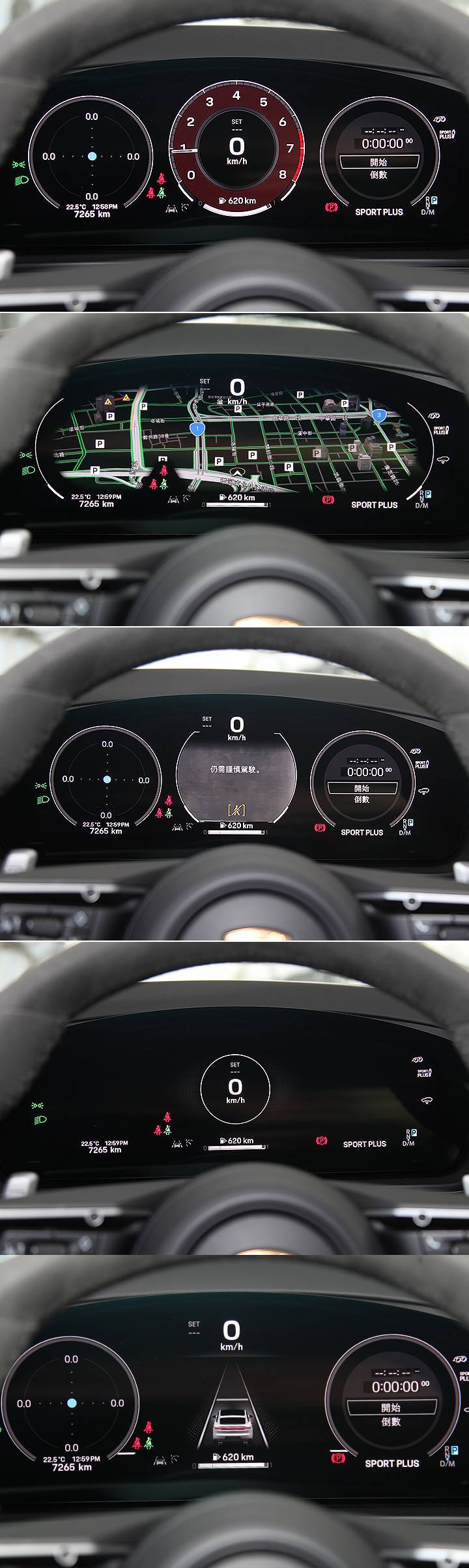 走進小改款 Cayenne Coupé 內飾,其最主要跟隨品牌新世代車型的步伐,將過去傳統 5 環結構包含中央傳統指針的儀表取代,改為全數位的 12.6 吋曲面儀表板組,在顯示畫面上擁有多達 7 種的顯示切換,主要追加了 3D 駕駛輔助系統畫面,并且除經典的 5 環布局外,還有轉速表、導航畫面投影、夜視畫面輔助等模式,雖然比起小改款前少了些許熟悉的「機械感」,但對于許多信息的判讀辨識感受可說是全面提升。