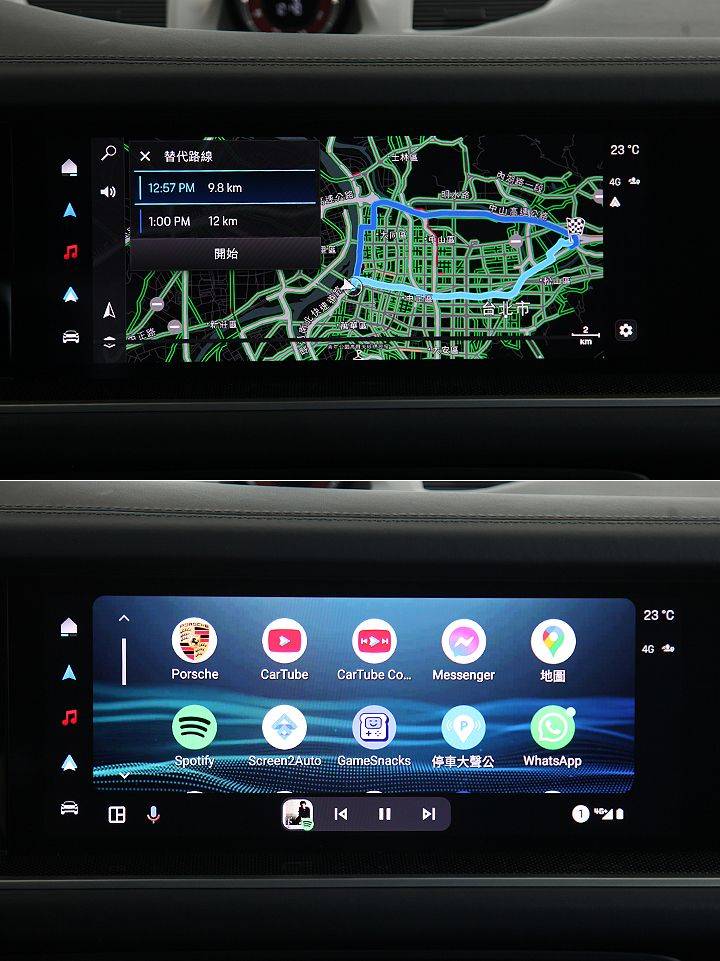 行車模式部分,標配就具有 Offroad、Normal、Sport、Sport Plus 等駕駛模式,切換至 Offroad 模式,則可進一步分為 Gravel、Mud、Sand、Rocks 等模式可選。不過由于試駕車選配了主動式氣壓懸掛、以及 PDCC 保時捷動態底盤控制系統,因此其除了在懸掛中有 Normal/Sport/Sport Plus 共 3 種段位可調外,更在車高有「特殊地形」、「地形」、「適中」、「已下降」、「低」等段位可調整,試駕車也因為選配跑車化排氣系統、因此在中控有跑車化排氣聲浪的開關可切換。