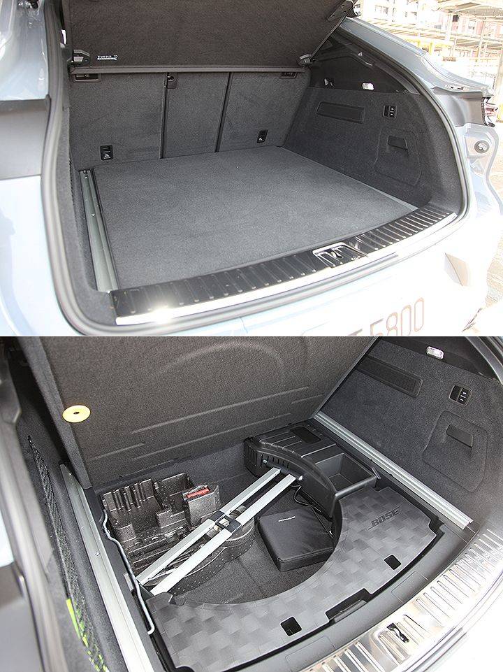 后座空間方面,由于 Cayenne Coupé是標配 4 座布局,中央座椅需另外加選,不過由于試駕車是選配了「輕量化碳纖運動套件」,因此原廠規范選配此套件就無法加選 5 座布局。后排座椅以筆者身高 178 公分身高乘坐下,膝部空間為 2 拳,頭部空間則為 4 指,頭部空間比起 SUV 車型的 1 拳半略有縮減,后行李廂傾倒前為 554 公升、傾倒后則可擴充至 1,502 公升。