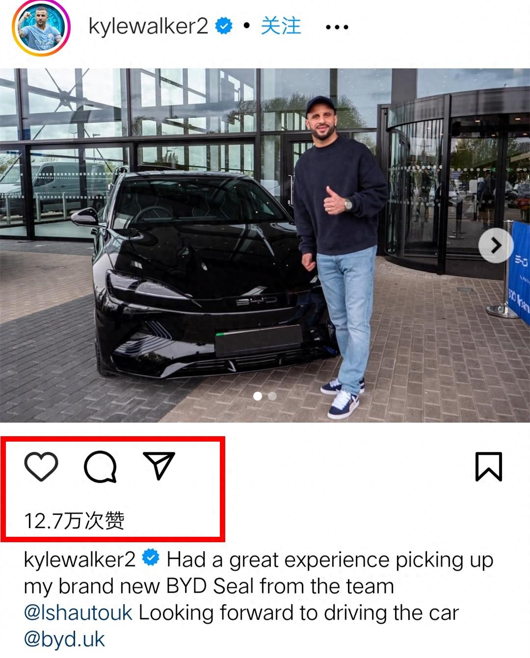 近日,效力于英格蘭足球超級聯(lián)賽曼城隊的隊長凱爾·沃克,司職右后衛(wèi),凱爾·沃克在體驗過比亞迪SEAL(國內海豹)之后連連點贊,并且迅速成為了車主。凱爾·沃克對比亞迪海豹的智能化座艙、外觀以及內飾都很滿意,并將提車過程上傳到了社交媒體,表示這是一個很棒的比亞迪Seal提車體驗,不得不說比亞迪在全球已經(jīng)多圈層海外受眾。名人效應會帶動比亞迪在海外的影響力,而且可以看到凱爾·沃克在社交媒體發(fā)布的這條動態(tài)的下方的點贊量接近13萬次,而且數(shù)量還在上升,讓海外的消費者對這款車也充滿了期待。
