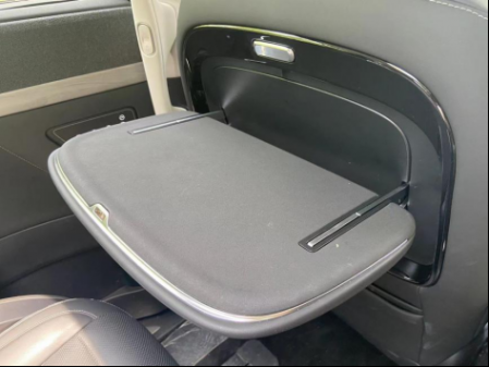 第二排還配有小桌板,可以寫作業(yè),或者放電腦來辦公,它的最大承載重量是35公斤。