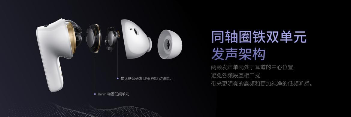 在魅族和樓氏聯合研發 LIVE PRO 動鐵單元與同軸圈鐵雙單元發聲結構加持下,魅族 LIVE AI 真無線 Hi-Fi 降噪耳機,不同頻段的發聲單元均能獨立高效地為耳道“服務”,避免各頻段互相干擾,使聲音更純正。同時,為讓 Hi-Fi 音質在魅族 LIVE AI 真無線 Hi-Fi 降噪耳機的輕巧機身中擁有出色表現,雙方圍繞發聲單元,針對高頻和中頻音樂進行特別調校,實現更為精準的音質還原,帶來震撼、沉浸的聽覺體驗。
