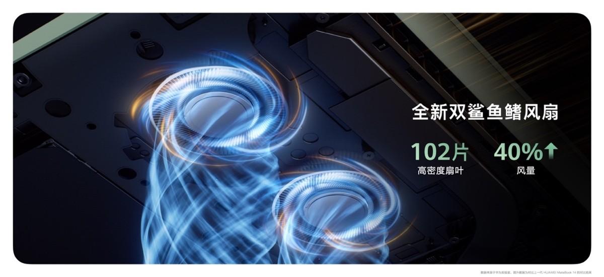 該機(jī)還配備了全新升級(jí)的鯊魚(yú)鰭雙風(fēng)扇,AI優(yōu)化風(fēng)扇設(shè)計(jì),帶來(lái)更優(yōu)的“流線型”扇葉曲線,氣流更順暢,同噪音下風(fēng)扇風(fēng)量提升40%[5],性能釋放更有保障!