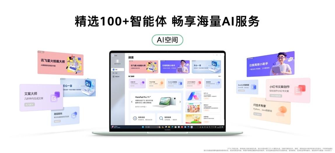 新款華為MateBook 14同樣也支持此前在旗艦機(jī)型上首發(fā)的AI空間功能,全新的一站式AI能力聚合平臺(tái),為用戶(hù)提供了多個(gè)業(yè)界領(lǐng)先的AI大模型以及超過(guò)100個(gè)AI大模型智能體,覆蓋辦公、學(xué)習(xí)、創(chuàng)作、軟件開(kāi)發(fā)等多種場(chǎng)景。不僅如此,華為還聯(lián)合第三方合作伙伴,為新款華為MateBook 14打造更全面的智慧能力。