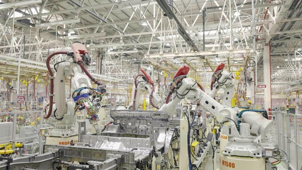 (圖:北京汽車制造廠青島總部基地自動化生產線)