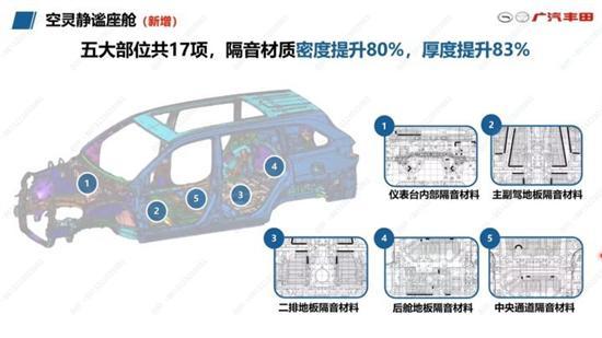 此外,新車針對儀表臺內部、主/副駕地板、二排地板、后艙地板以及中央通道等部位進行隔音升級,密度均提升80%,厚度均提升83%,擁有更好的靜謐性表現。