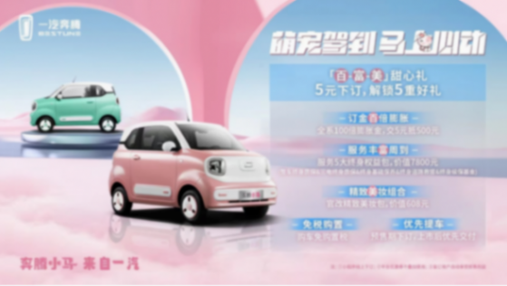 好看、好玩、好開、好省、好安全的奔騰小馬在今年的4月30日,奔騰小馬正式開啟預售,共發(fā)布3款車型、6種車身顏色,其中122km萌趣馬預售價2.89萬元、170km元氣馬預售價3.19萬元、170km活力馬預售價3.49萬元。更驚喜的是,萌友們僅需5元下訂,即可解鎖包含訂金百倍膨脹、官改精致美妝包、整車及三電終身質保在內的5重好禮。可以說一汽奔騰寵粉絕對是寵到天了!