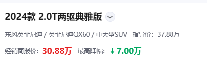 在當下的國內汽車市場,除了新能源車的價格在卷,燃油車的優惠幅度同樣非常大,包括不少豪華品牌其實都加入了“價格戰”中,比如今天要說的這款英菲尼迪QX60。