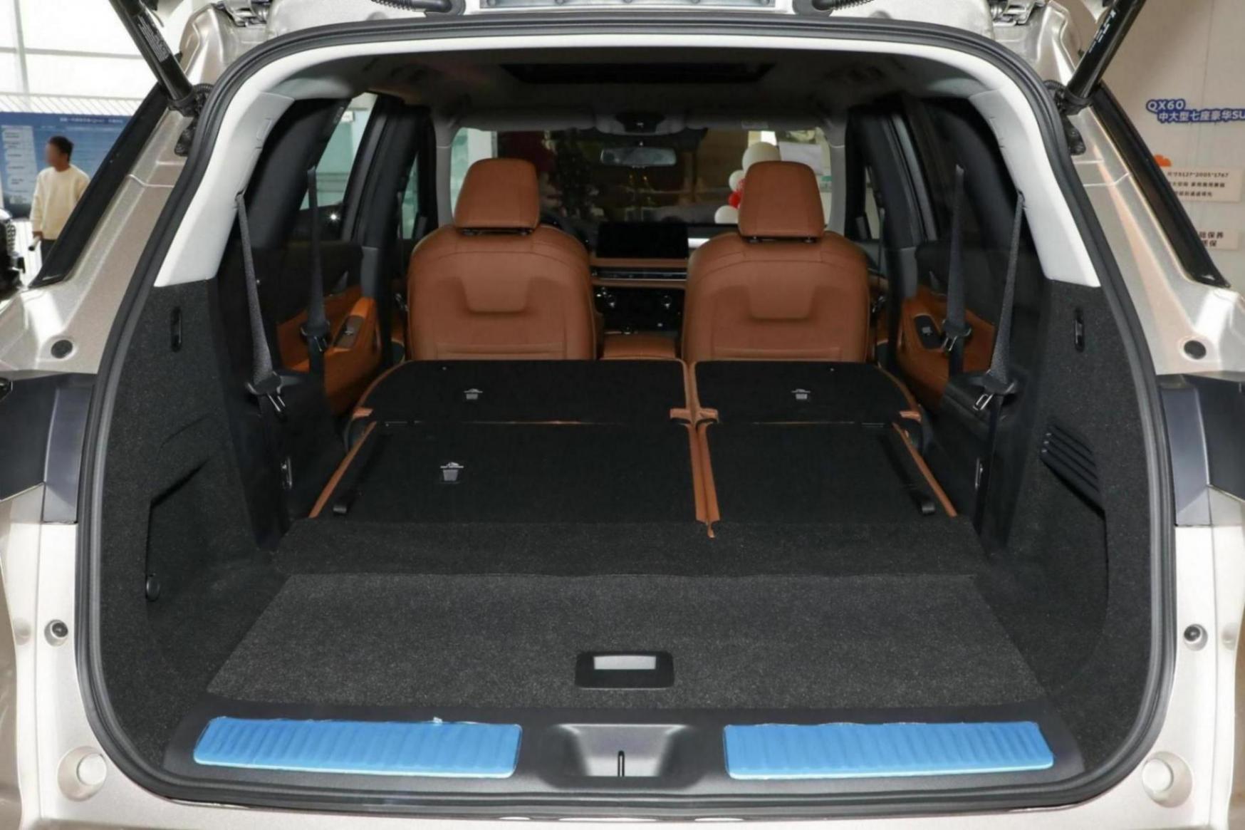 尺寸方面,英菲尼迪QX60的長寬高分別為5127*2005*1767mm,軸距為2900mm,妥妥的中大型SUV級別。在座位布局上,中低配三款車型采用的是2+3+2的七座版,而中高配的三款車型采用的是2+2+2的六座版車型,中間是兩張獨立的座椅。后備廂容積,該車在三排座椅都打開使用的情況下,提供了326升的容積,放倒中排和第三排座椅后,最大可拓展至2352升,空間方面毋庸置疑。