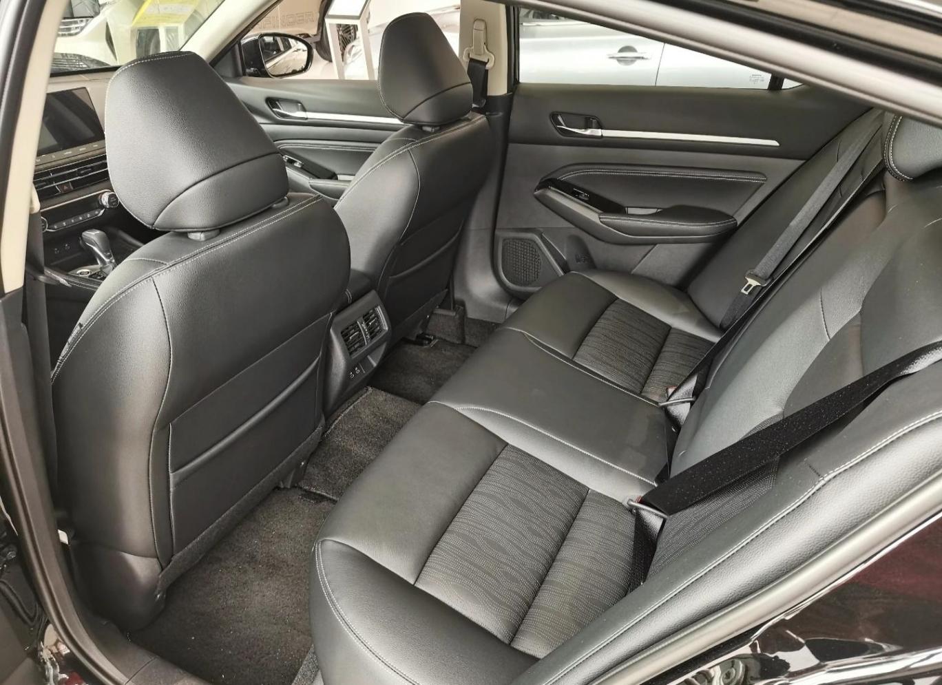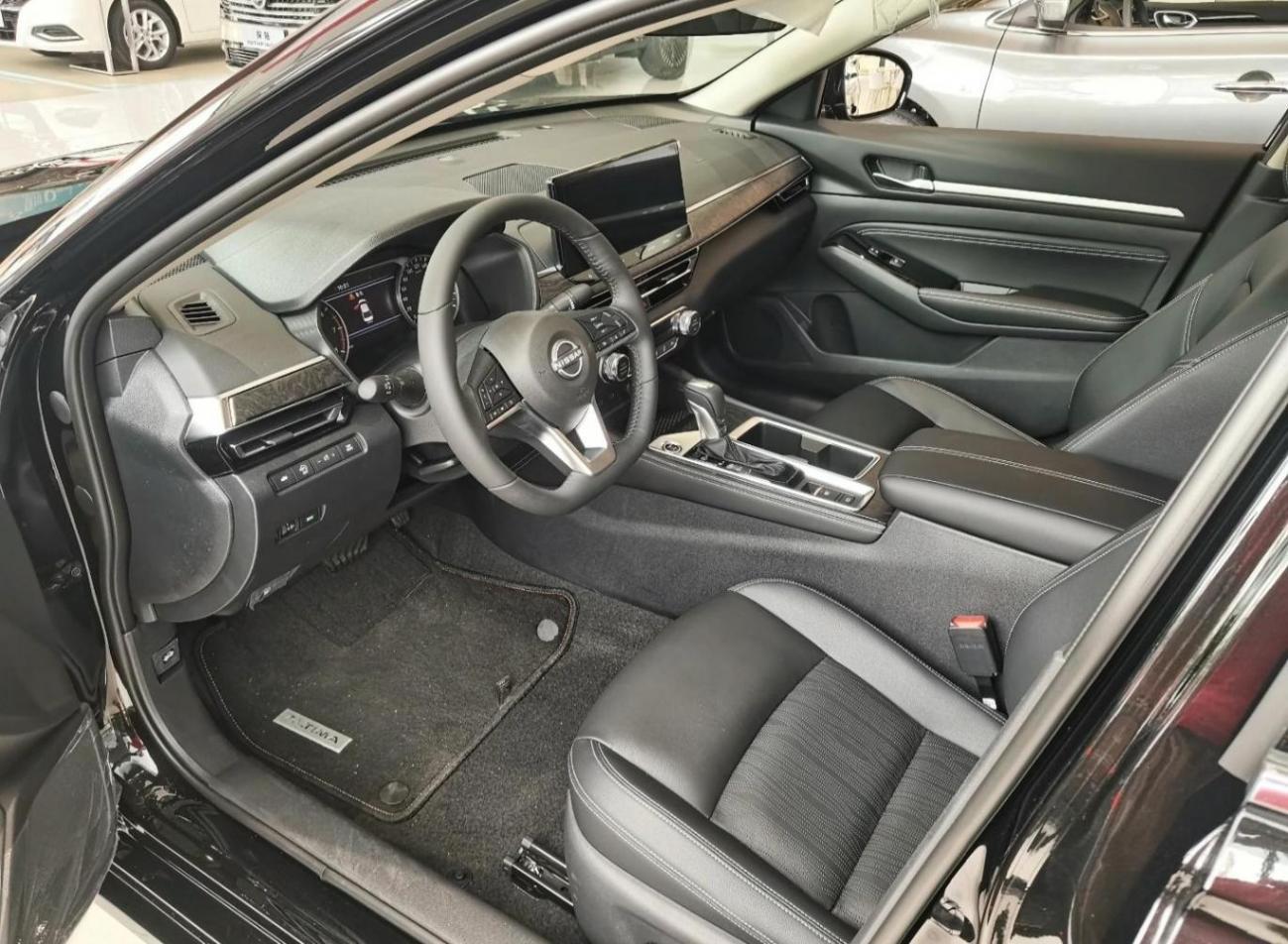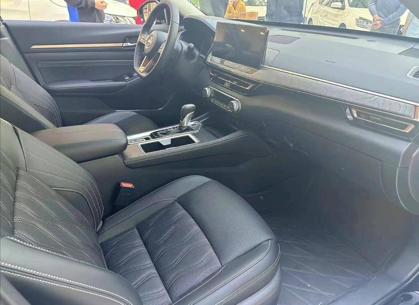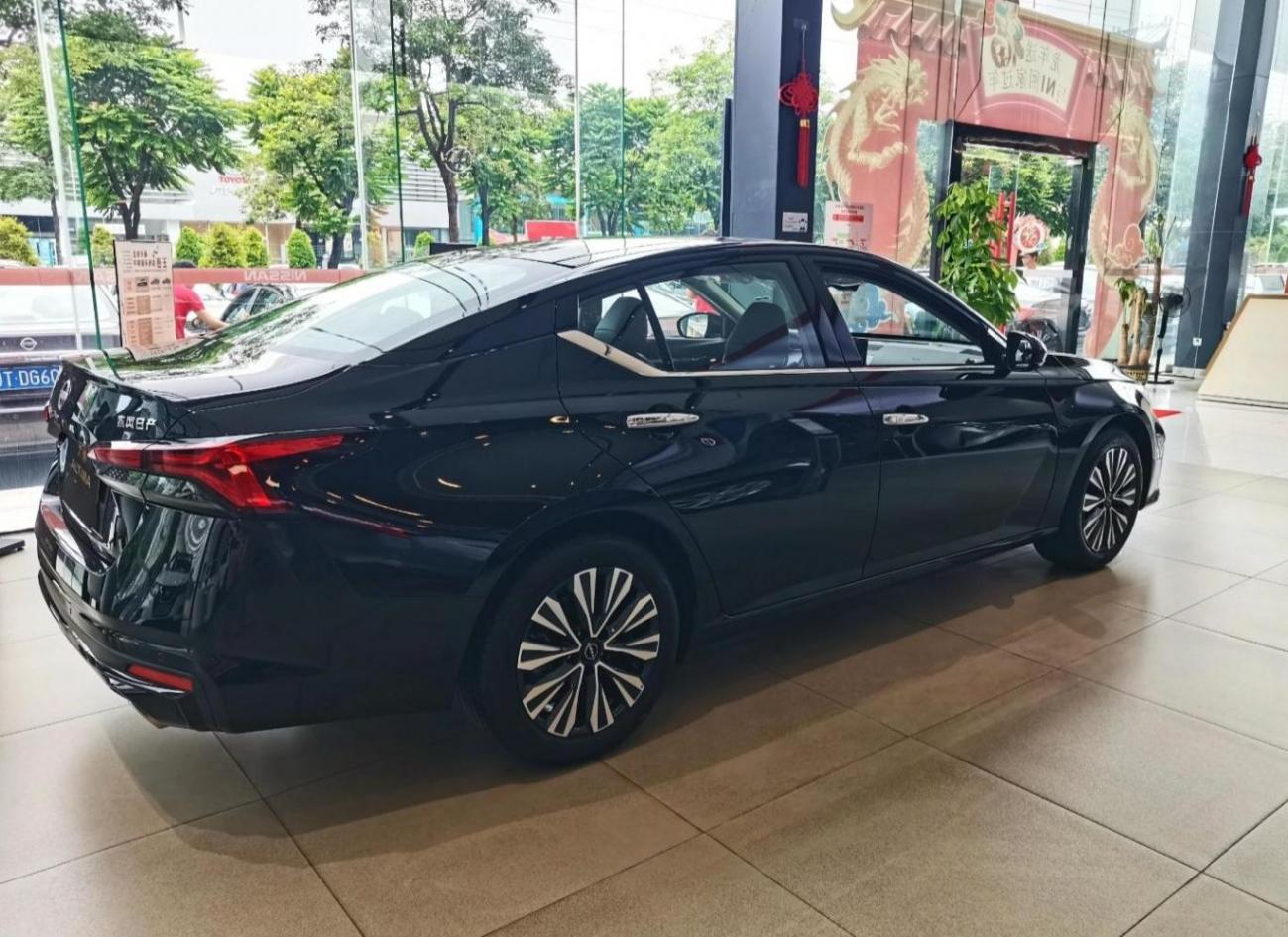 在車身側面,新車同樣一黑到底,除了車門把手的鍍鉻條和車窗下沿的鍍鉻條之外,通體全部是黑色,配合流暢的車頂過渡,特殊的C柱交匯等元素,有著更強的立體感。當然大尺寸的輪轂采用的多幅造型,提升了運動的屬性。在車尾部分,T字形的紅色光源包裹白色燈組的尾燈,不會有明顯的變化,中央的天籟字母車標變為了金色,右上角的東風日產也是金色,與車頭形成對應,尾箱蓋末端不忘翹起的小尾翼,后保險杠部分則有著雙邊雙出排氣,顯示了燃油車型應有的姿態,即便該車只是一款2.0升自然吸氣動力。