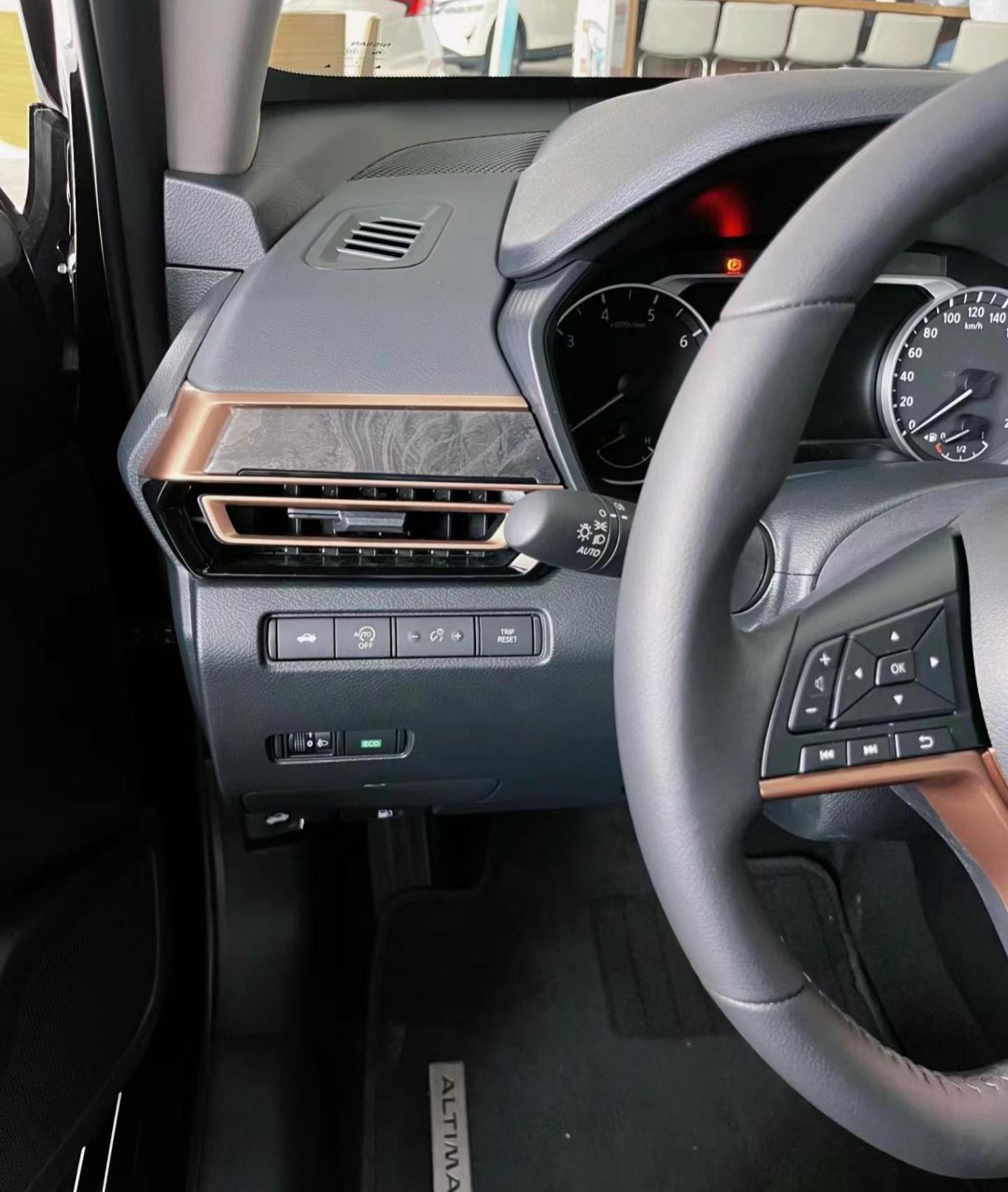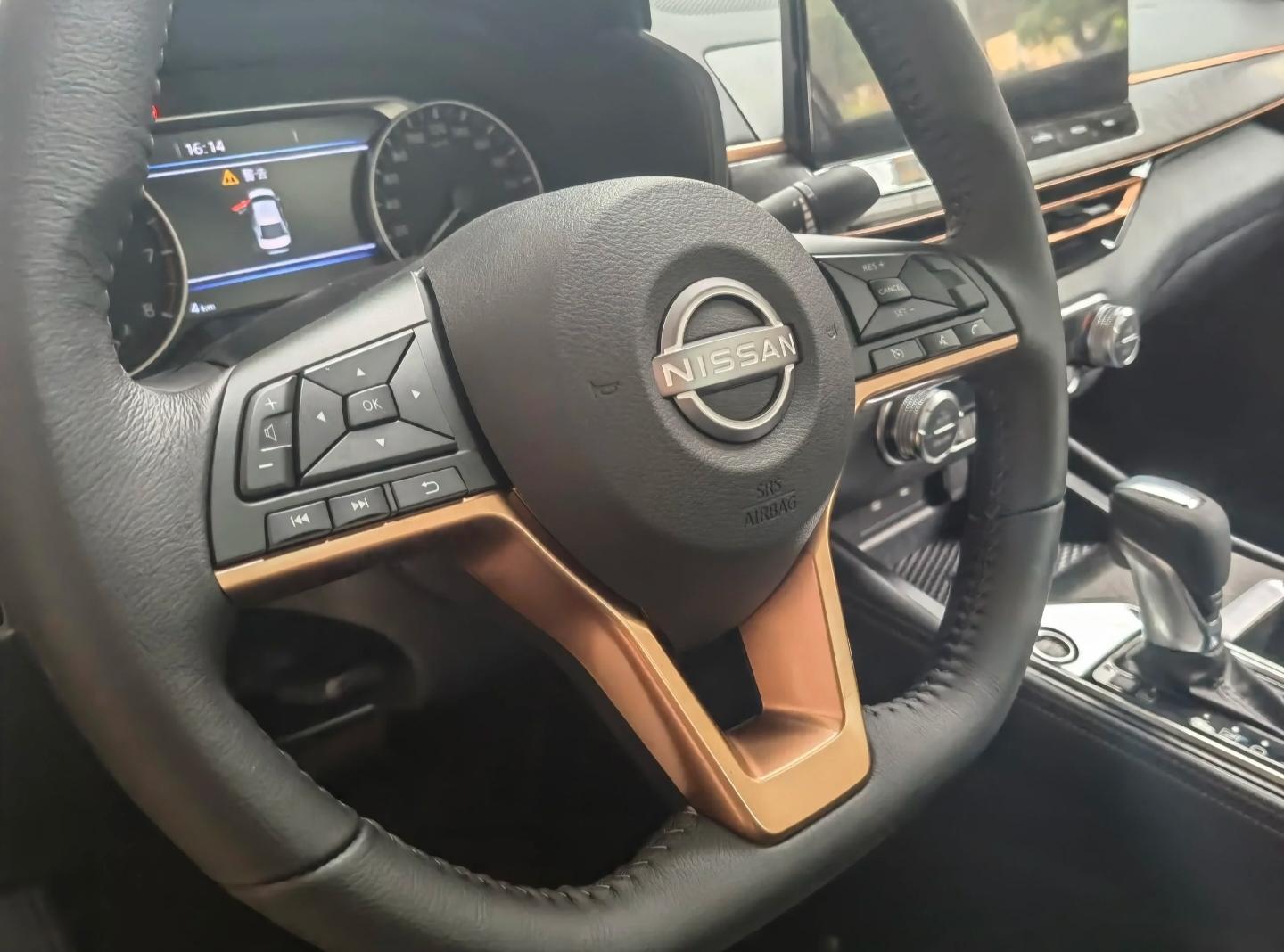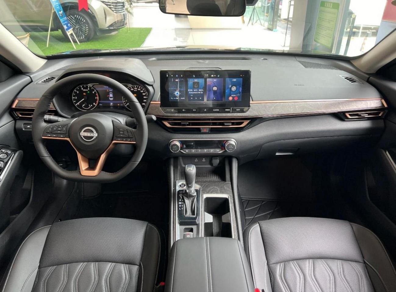 在內飾部分,新車同樣也以黑色為主,整個中控臺面包括木紋質感的裝飾條,門板座椅等元素基本都是黑色,但在細節方面在方向盤六點鐘位置,貫穿式中控臺面裝飾條,空調出風口,車門拉手處的裝飾條以及座椅門板等處的縫線加入了金色元素,同樣是與外觀對應的特殊質感,在不同的光線下有著明暗的變化,令人眼前一亮。扶手箱前端區域也采用了精致的黑色木紋覆蓋,提升了整體的檔次感。而本就黑色的車機界面相得益彰,考慮到相當的周到。當然對于日產來講,出色的后排空間表現及乘坐體驗才是主要的賣點,前排座椅配備了加熱通風,精致的菱形壓花配合金色滾邊,加上祖傳大沙發式座椅填充,提升了乘坐舒適性的享受。