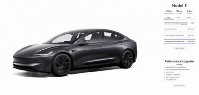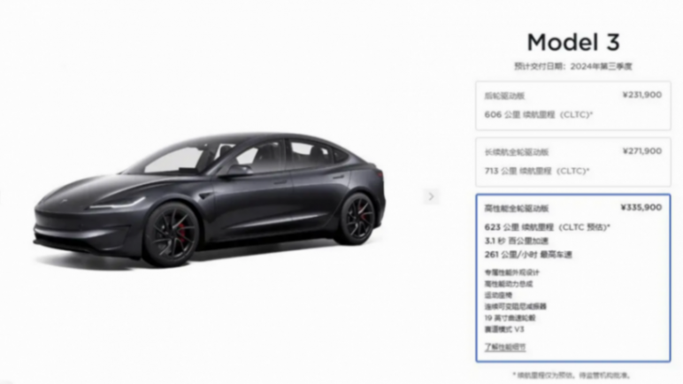 全新Model 3高性能版已經在美國市場開啟交付,部分車主在實際測試中取得了2.9秒的0-60英里加速成績,這一數據比官方公布的3.1秒更快。在美國,全新Model 3高性能版的官方指導價為54990美元,考慮到聯邦稅收抵免,實際售價為52990美元。而在中國市場,Model 3高性能版的預售價為33.59萬元人民幣,預估續航為623公里,預計將于2024年第三季度正式交付。