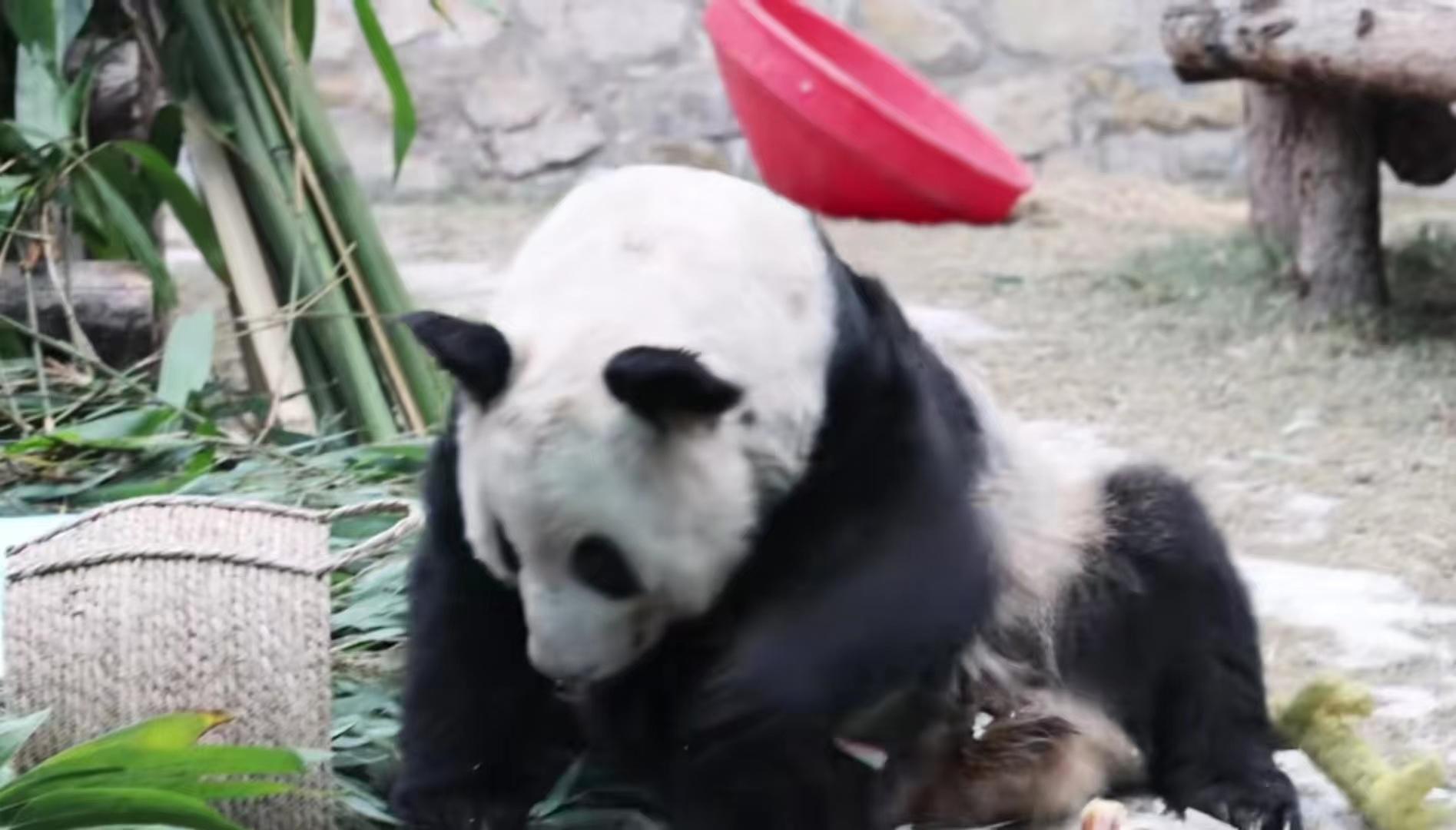 2月2日,北京動物園官方更新了大熊貓“丫丫”最新的吃播視頻。