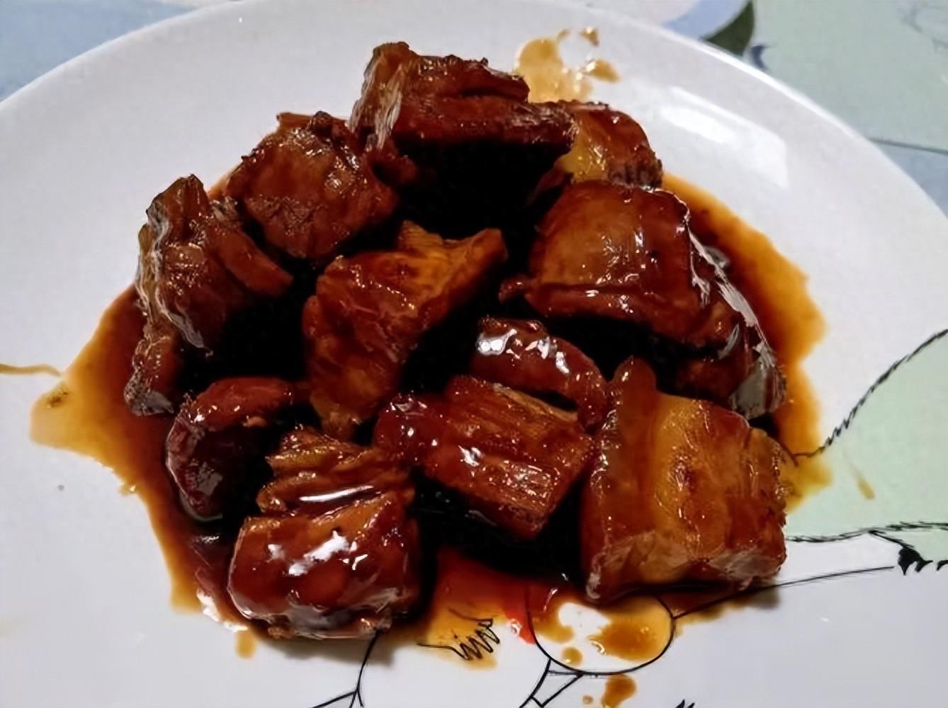 選用肥瘦相間的五花肉,經過煸炒、上色、慢燉等步驟,最終呈現出令人垂涎三尺的美味。