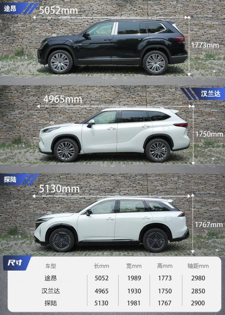從尺寸數(shù)據(jù)上,以往豐田漢蘭達絕對算是同價位中的大塊頭,不過來到當(dāng)前這個時代就只能算是中規(guī)中矩,相比起定位中大型SUV的探陸與途昂全方位都有些差距,探陸和途昂則在長寬高上各有優(yōu)劣。
