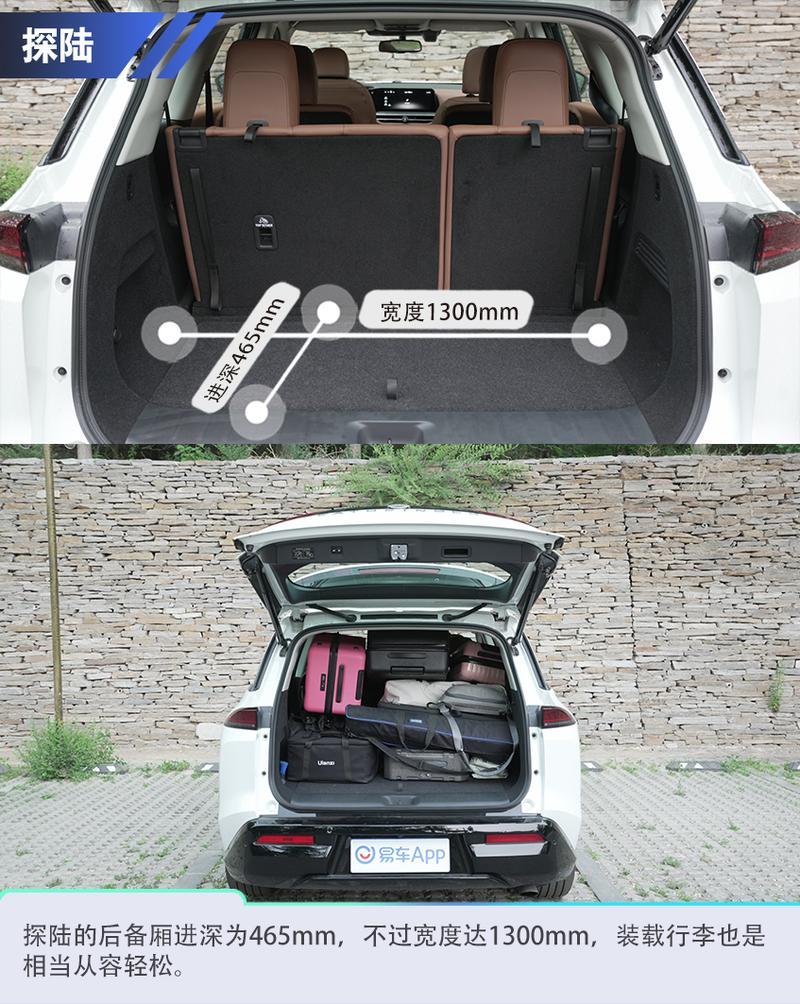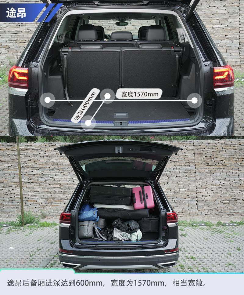 探陸由于對乘坐空間有更高的兼顧,因此在后備廂空間上稍遜色于途昂,不過放下多個登機箱還是沒有問題的,此外,探陸的后備廂寬度比較令人驚喜,能夠相當(dāng)從容地裝載更多大件行李物品,同樣數(shù)量的行李塞進探陸的后備廂能夠展現(xiàn)出肉眼可見的寬松,后備廂空間也有一定余量。