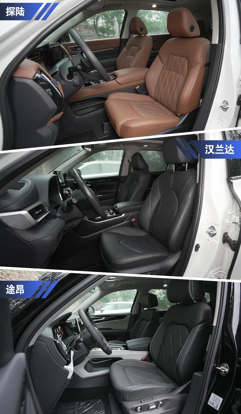 外觀和內(nèi)飾的設(shè)計各花入各眼,審美方面因人而異,不過車內(nèi)材質(zhì)和做工用料,卻是實打?qū)嵞軌蛴绊懫焚|(zhì)感和舒適性的。探陸的車內(nèi)無論是視覺還是觸覺,都能帶來挺強的檔次感。途昂的內(nèi)飾設(shè)計比較常規(guī)不算出彩,不過好在做工和用料較為細膩,顯得比較精致。漢蘭達從風(fēng)格上更加樸素,相比另外二位顯得有些掉隊。