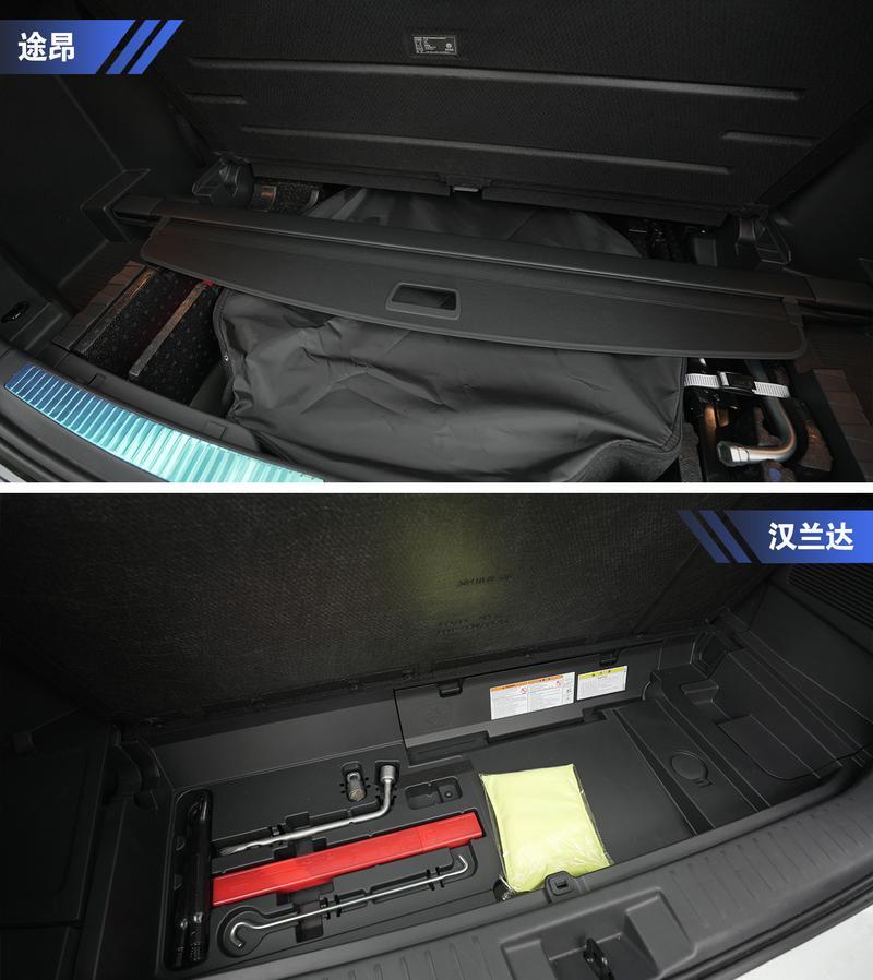 漢蘭達和途昂的后備廂地板下方則被工具或備胎占滿,基本無法放置其它行李物品。