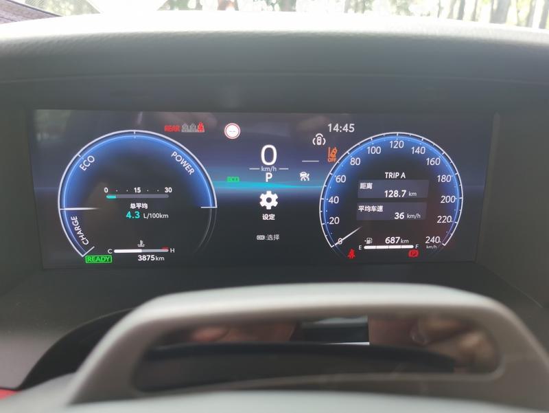 在行駛了3個多小時后,我們共計行駛了128.7km,平均車速36km/h,基本和大家平時城區通行的速度一致。此時表顯油耗為4.3L/100km,與官方公布的WLTC綜合油耗4.2L/100km非常接近。