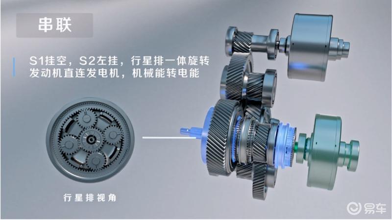 同時馬赫電混PHREV融合四擋DHT串并聯(lián)+功率分流的模型,集成1個行星排,3對定軸齒輪以及2套同步器,結構相比同級車型更簡單可靠。