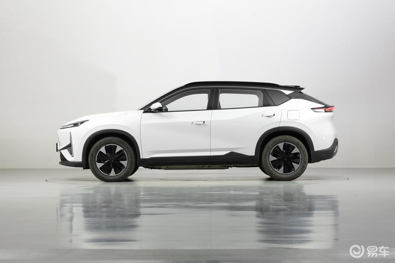 車身側面,新車采用了車頂與車身不同色的雙色設計,車身腰線則勾勒出了前后翼子板的寬體效果,再加上溜背造型,整體勾勒出動感的效果,配合低風阻輪圈,讓新車看上去更具力量感。