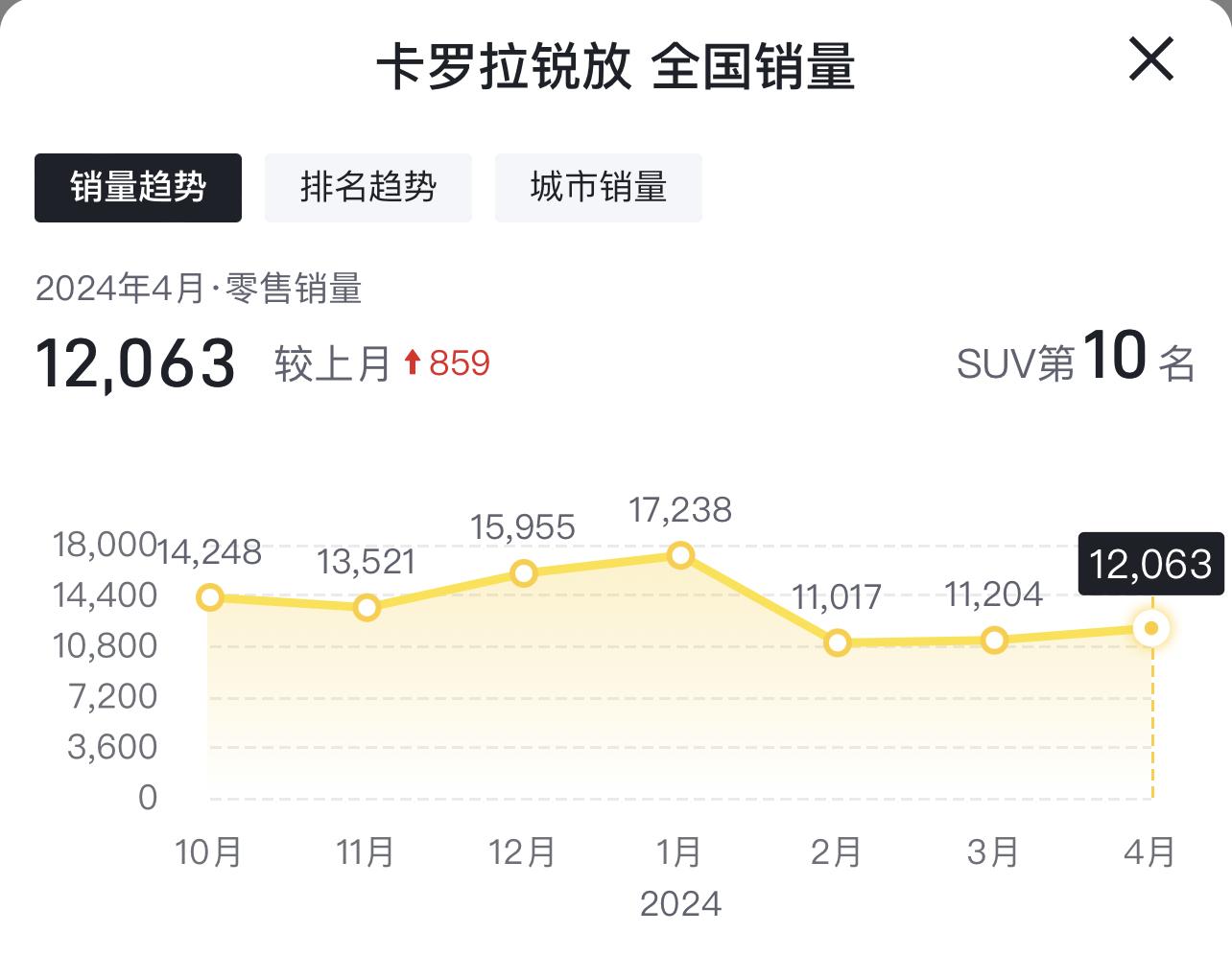 第9名,豐田榮放,月銷12664輛。這車最近的負面消息很多,例如車身生銹、顆粒捕捉器堵塞等問題,但同樣是架不住價格低呀,部分地區低配的榮放裸車能干到12萬多,落地都不到14萬了。