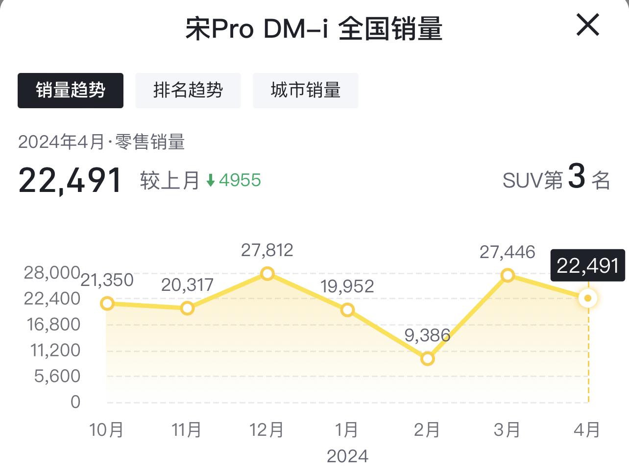 體型比他稍小點,價格更便宜的比亞迪宋Pro DM-i,月銷22491輛,10萬出頭的價格,真的是做到了平替國產燃油SUV。