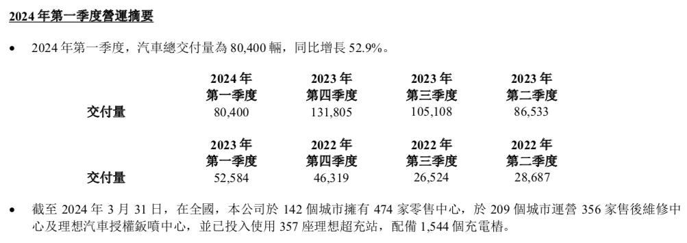 在銷量情況上,交付方面,一季度理想汽車累計交付80400輛,同比增長52.9%。但是按照此前理想汽車的目標,一季度預期交付100000-103000輛,現在的成績并沒有達到預期。因此又將預期下調到76000-78000輛,理想汽車的李鐵對此表示,雖然第一季度交付量環比有所波動,但其對未來的交付量實現增長充滿信心,并將持續在研發和銷服網絡進行投入。