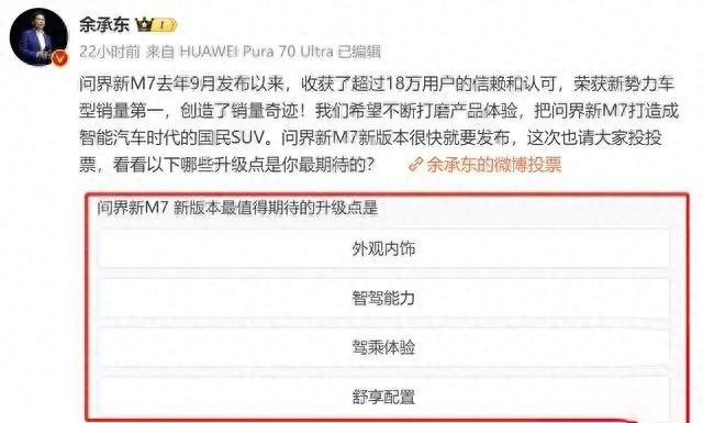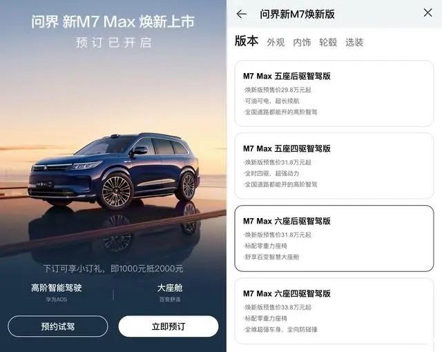 實際上,本次問界M7煥新版屬于新增車型,官方稱之為MAX版本,雖然新階段產品所透露的信息并不多,但根據(jù)余承東透露,問界新M7煥新版將針對外觀內飾、智駕能力、駕乘體驗以及舒享配置進行升級,而按照慣例,可以猜測在問界M9上的功能配置、核心技術等也將會下放至這款新車上。