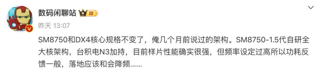 不過根據(jù)博主@數(shù)碼閑聊站 的爆料信息顯示,雖然目前的樣片性能很強,但后續(xù)可能會平衡頻率和功耗之間的關(guān)系,實際落地后有可能會進行降頻處理。