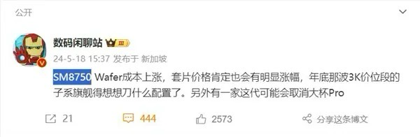 除了性能的提升,博主@數(shù)碼閑聊站透露,伴隨著臺積電3nm先進工藝制程節(jié)點的到來,緊接著就是晶圓成本的上漲。最終結(jié)果就是驍龍8 Gen4的套片價格漲幅明顯,這也勢必會影響到終端品牌手機的定價。
