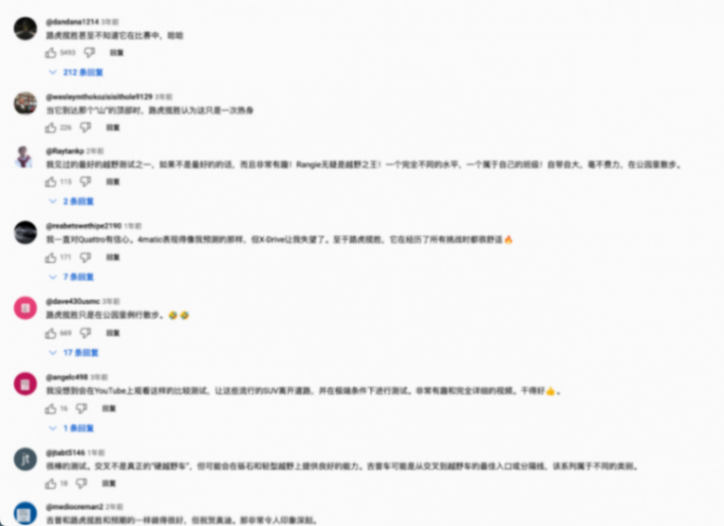 到場的那款攬勝配備了5.0L機械增壓發(fā)動機,零百(01)加速僅需5秒鐘,最大可迸發(fā)馬力525HP,最大扭矩為625N·m,它動力上以標準模式運行,變速箱處于自動檔位模式,第二代全地形系統(tǒng)也處于自動模式,它全程越野路段輪胎幾乎不出現(xiàn)任何絲毫打滑,引用底下粉絲熱評的話就是攬勝“一路輕輕松松地像「公園散步」一樣越過了所有障礙坡”、“它甚至不知道在參加比賽”,無論是通過交叉軸還是低附著力的大沙地,而其他的車型要么是爬不上坡要么就是費了「九牛二虎之力」一路打滑才艱難地爬上終點。
