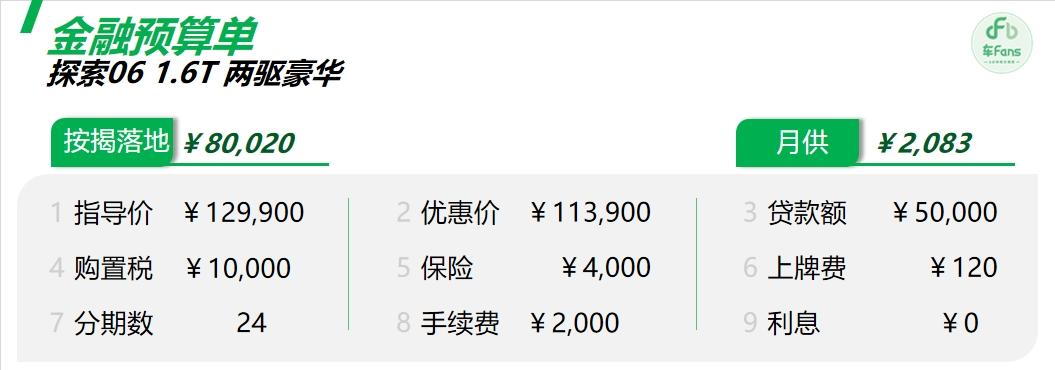 金融貸款支持兩年5萬免息,優惠和全款一樣都是16000,但有2000金融手續費。如果做五年貸8萬的話,能夠到24000的優惠,首付39400,60期月供1680,可以兩年提前還清無違約金,一年利息是4160,五年一共20800,免手續費落地119400。