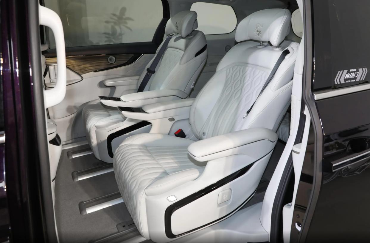 這款車的第2排比較高端,兩個超大的獨立頭等艙座椅前后滑動距離很大,而且左右兩側(cè)都有獨立扶手,再加上電動腿托以及觸控面板,細(xì)節(jié)豪華質(zhì)感并不輸給一些30多萬的高端MPV。