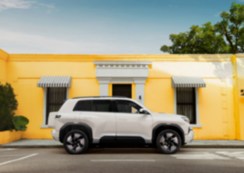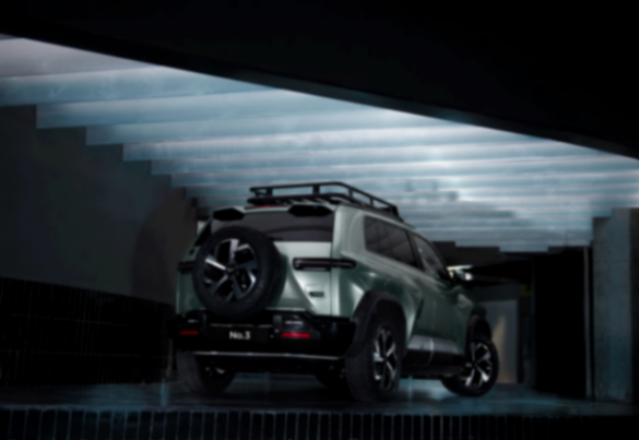 車身側面并不是有棱有角的方盒子效果,不過前后輪的輪拱上方都有大面積的突出,這也營造出了比較硬派的肌肉感,整體腰線是略微前傾的,這種尺寸不大的SUV車型更容易塑造出運動氛圍。當然細節上少不了隱藏門把手,車頂行李架,以及黑色防擦輪眉。