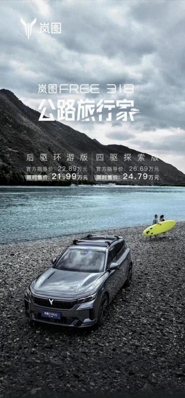 昨晚,嵐圖FREE 也推出了純電續航318公里的后驅版,售價為22.89萬元,算上首銷期的優惠售價為21.99萬,算的上同價位車型當中最便宜的。