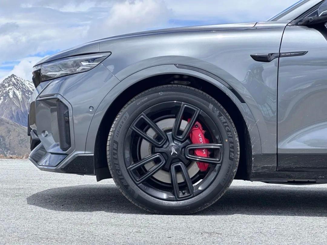 車側也是一黑到底,五輻輪轂、車窗飾條、車頂行李架都改為了亮黑色涂裝,結合新增的全新鈦晶灰車漆和紅色制動卡鉗,是性能車的味道。