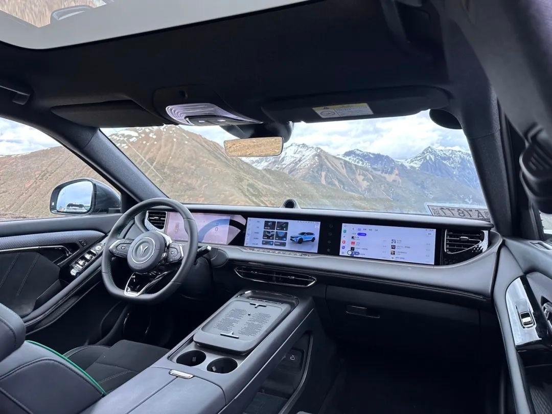 配置方面,全系標配標配全車雙層隔音隔熱玻璃、手機無線充電、10揚聲器丹拿音響系統,四驅版額外增加了100毫米可調空氣懸架、百度“阿波羅”智駕輔助2.0