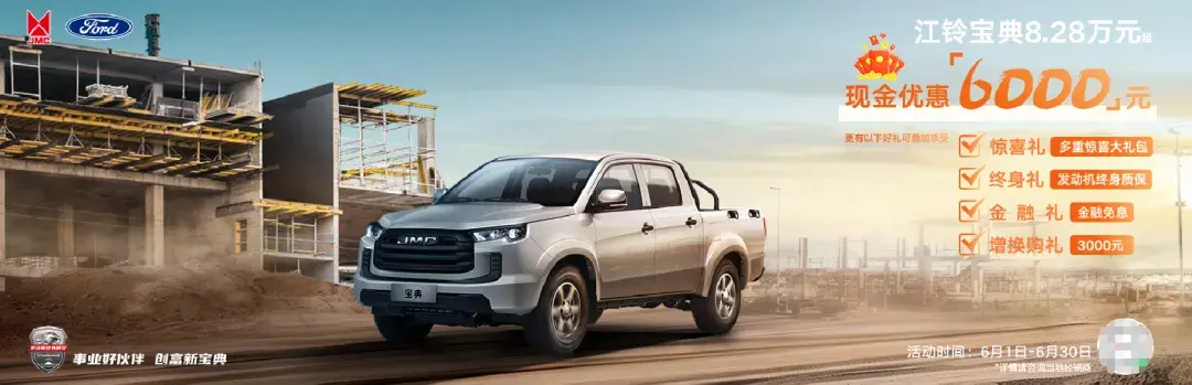 作為一個(gè)銷售超20年的經(jīng)典商用皮卡,江鈴寶典一直是品牌旗下的銷量扛把子,一直位居國(guó)內(nèi)皮卡市場(chǎng)銷量榜單前列。近日,江鈴寶典進(jìn)行了優(yōu)惠活動(dòng),現(xiàn)金優(yōu)惠6000元,并支持多重驚喜大禮包、發(fā)動(dòng)機(jī)終身質(zhì)保、金融免息、3000元增換購(gòu)禮金。