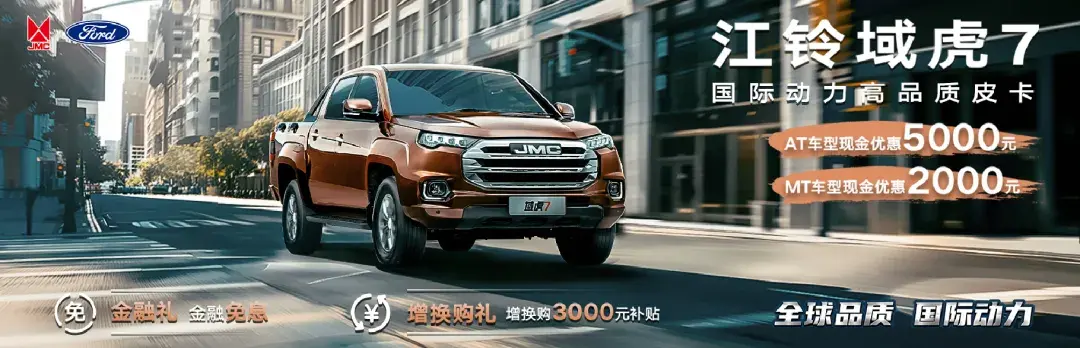 江鈴域虎7是江鈴汽車旗下的高品質(zhì)家商兩用皮卡,該車AT車型現(xiàn)金優(yōu)惠5000元,MT車型優(yōu)惠2000元,其中MT車型優(yōu)惠后起售價(jià)僅需9.28萬(wàn)元,AT車型優(yōu)惠后起售價(jià)僅需10.23萬(wàn)元。除此之外,江鈴域虎7還支持金融免息,并支持3000元增換購(gòu)補(bǔ)貼,能成為助力用戶在工作、家用兩不誤的得力助手。
