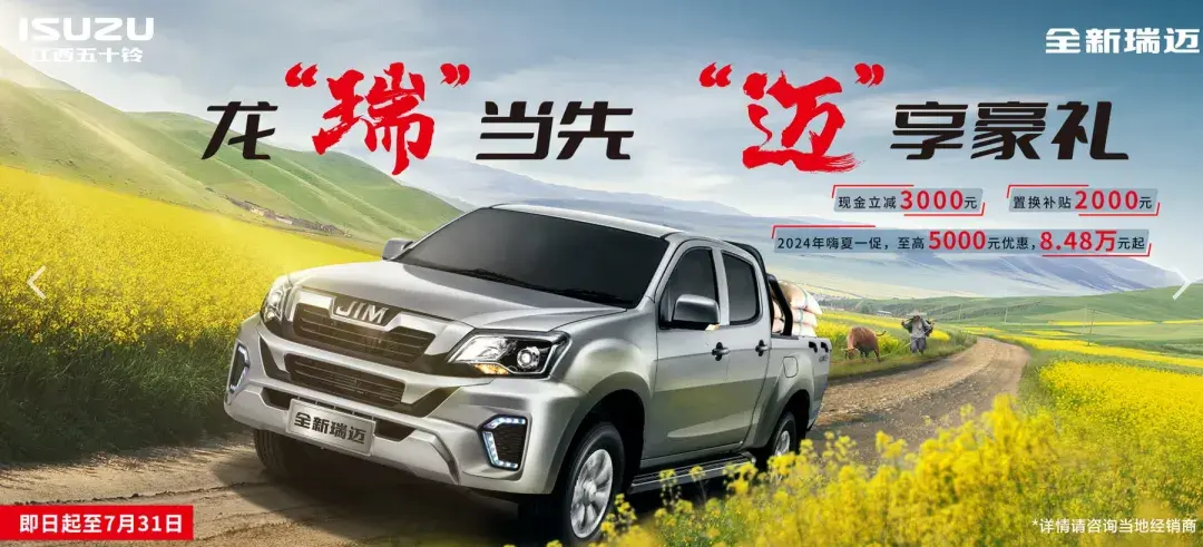 江西五十鈴一直都是用戶較為關(guān)注的車企,就在最近,江西五十鈴針對(duì)瑞邁車型開展了促銷活動(dòng),可支持3000元現(xiàn)金優(yōu)惠,2000元置換補(bǔ)貼,綜合優(yōu)惠至高5000元。活動(dòng)時(shí)間截止至7月31日。