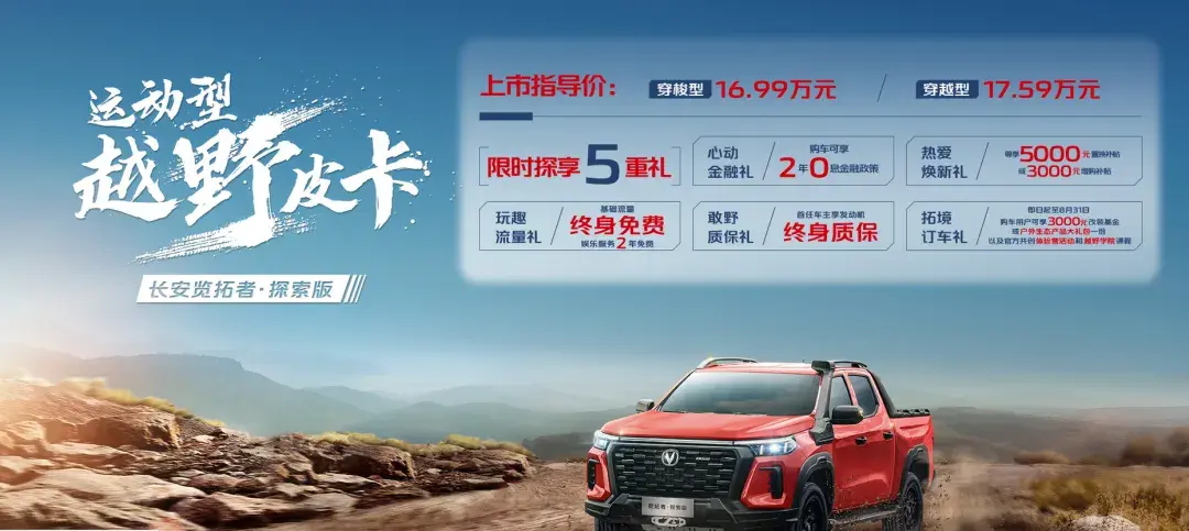 隨著長(zhǎng)安覽拓者拖掛版的推出,長(zhǎng)安開啟了面向皮卡產(chǎn)品多元的戰(zhàn)略布局,其中長(zhǎng)安覽拓者探索版為進(jìn)一步回饋廣大消費(fèi)者,進(jìn)行了本月的銷售活動(dòng)。