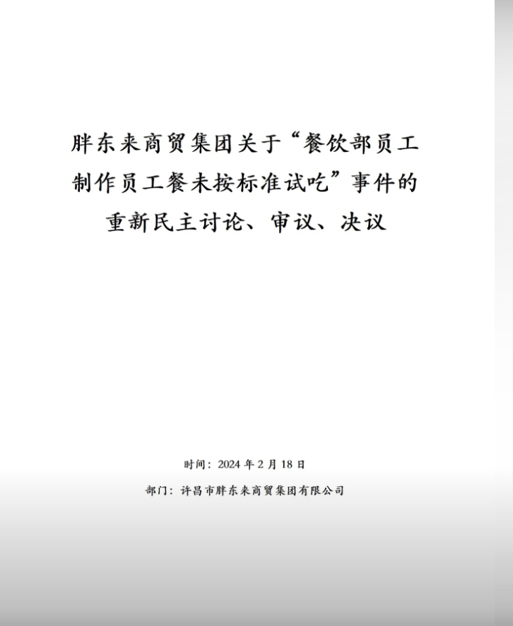 鑒于部分網(wǎng)友對于解除當事員工勞動合同并關閉火鍋檔口的處罰決定進行了強烈熱議,胖東來集團決定啟動管理委員會,組成“民主合議庭”重新審議、決議此事。