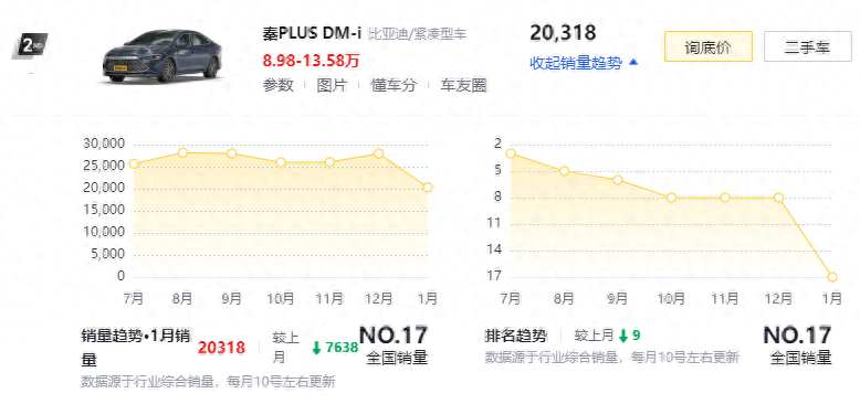 秦PLUS DM-i冠軍版以其良好的性價比一直吸引著消費者。2023年春節前,比亞迪突襲推出更低價的“榮耀版”,將價格進一步下調至7.98萬元,直接打響了龍年新能源車市場價格戰的第一槍。這無疑會進一步鞏固比亞迪在該細分市場的領先地位。