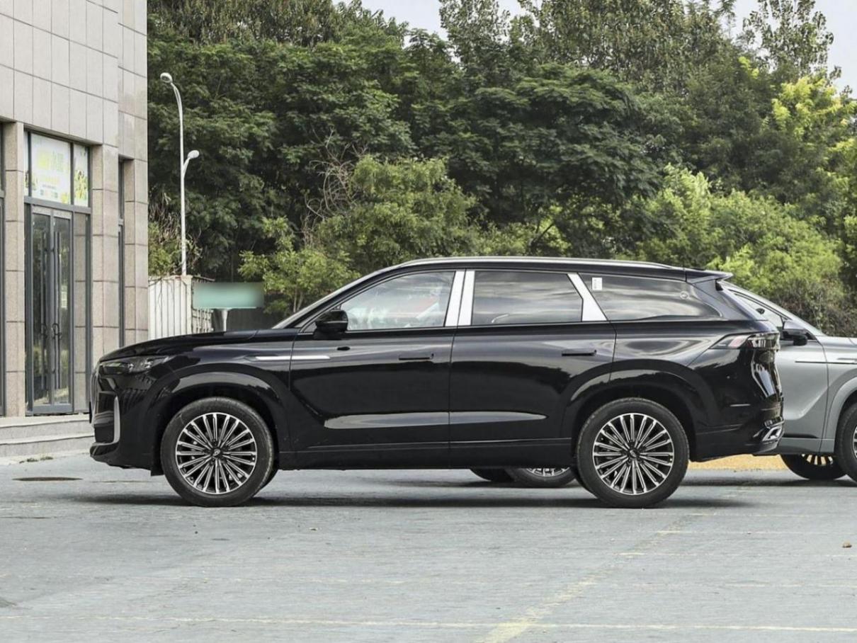 四平八穩的車側造型,一看就知道這是一臺主打家用、豪華的車型,細長的腰線從車頭一直貫穿至尾部,讓側面顯得頗為修長。全新樣式的20英寸密條輻輪圈,豪華感不用多說,要知道類似的設計在很多超豪華車型上才能見到。門把手則為隱藏式設計,這一點就有點不應該了。