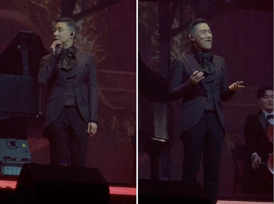 演出當晚,在演唱《剎那愛》時,伴隨著前奏音樂的響起,張學友隨升降設備從舞臺下方緩緩升起。只見他閉目凝神為歌曲蓄積情緒,而當他正欲開口演唱時,卻有另一個張學友聲音傳出。張學友當即放下麥克風,回頭看向身后樂手,表情非常錯愕。